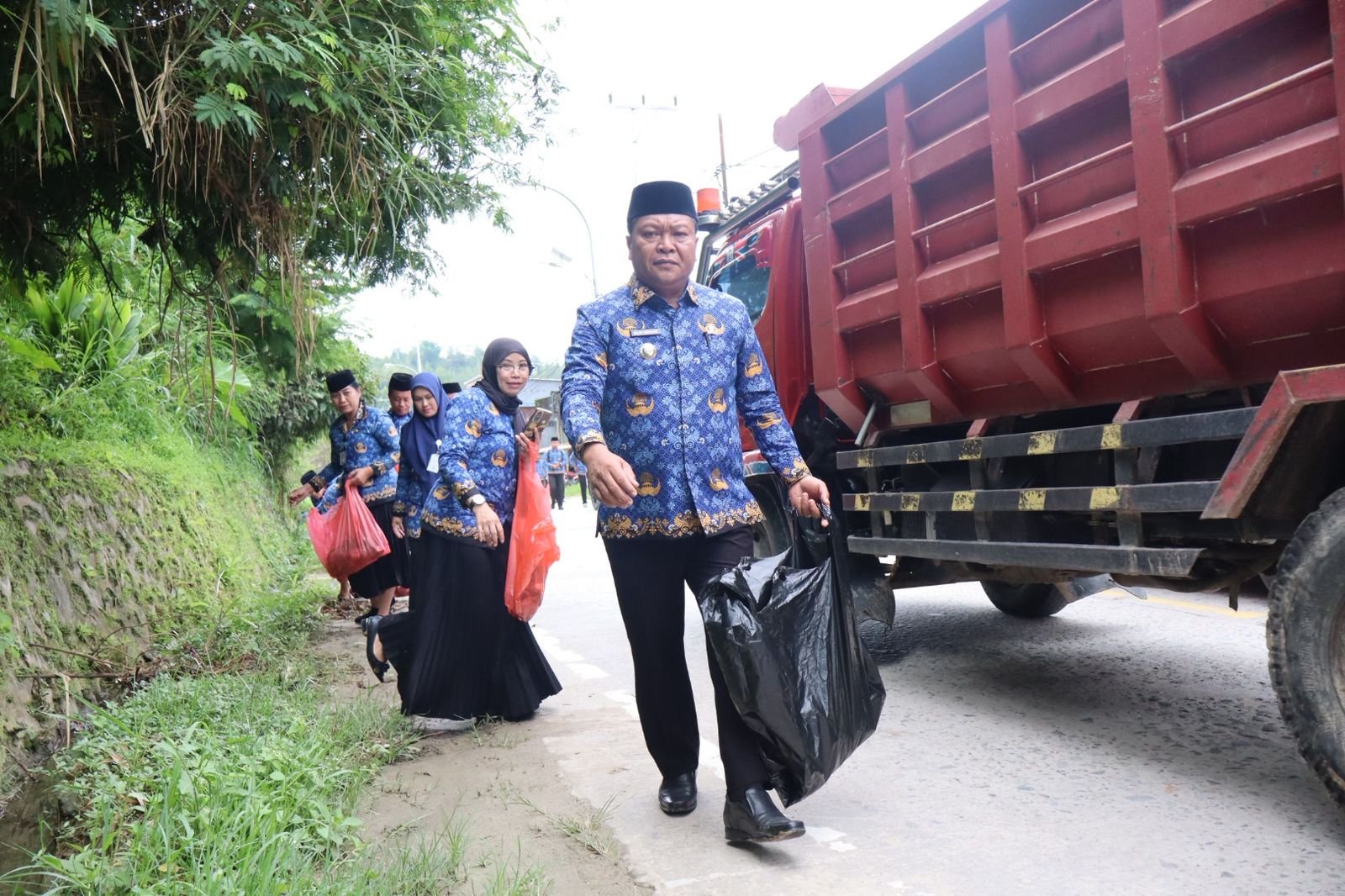 Usai upacara para peserta upacara melakukan aksi pungut sampah di jalan yang dipimpin langsung oleh Bupati Mamasa bersama jajaran pimpinan OPD Lingkungan Pemkab Mamasa.( Agustinus)