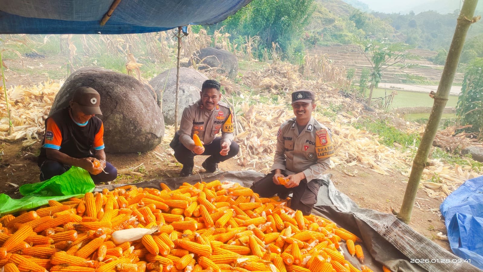 MAMASA,CYBERPENA.ID — Kapolsek Aralle IPTU Amiruddin bersama Bhabinkamtibmas Desa Panetean Brigpol Muhammad Yusuf melaksanakan kegiatan monitoring terhadap warga yang sedang melakukan panen jagung di wilayah hukum Polsek Aralle, Rabu (28/1/2026).