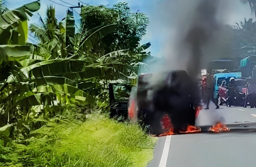 Saksi di lokasi menyebut, api mulai muncul dari bagian mesin mobil saat kendaraan berhenti di tepi jalan. Para petugas sempat berupaya membuka pintu kabin untuk memindahkan uang, namun kunci kontak mobil tertinggal di dalam tepat ketika api mulai menjalar cepat.