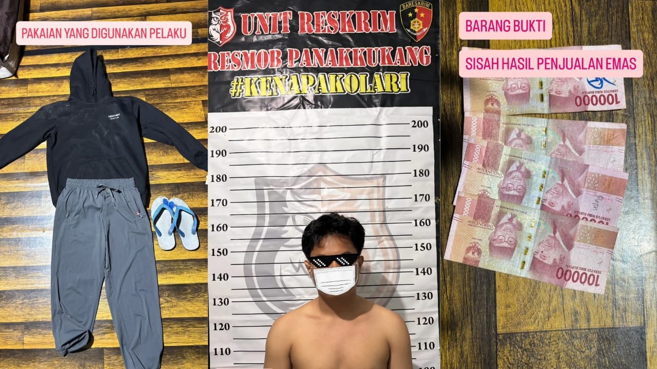 MAKASSAR,CYBERPENA.ID— Tim Opsnal Resmob Unit Reserse Kriminal (Reskrim) Polsek Panakkukang, Polrestabes Makassar, berhasil meringkus seorang pelaku tindak pidana pencurian dengan kekerasan yang terjadi di Jalan Sukamana 1, Lorong 2, Kelurahan Sinrijala, Kecamatan Panakkukang, Kota Makassar, Sabtu (13/12/2025).